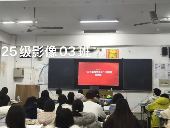 活动中,视频围绕全会核心内容与“十五五”规划重点,结合PPT宣讲等形式,带领同学们深入学习“科技自立自强”“高质量发展”等关键议题。现场学习氛围浓厚,同学们积极交流,进一步明确了个人所学知识与国家战略的紧密联系,增强了服务国家发展的责任感和使命感,坚定了以青春奋斗投身中国式现代化建设的决心。